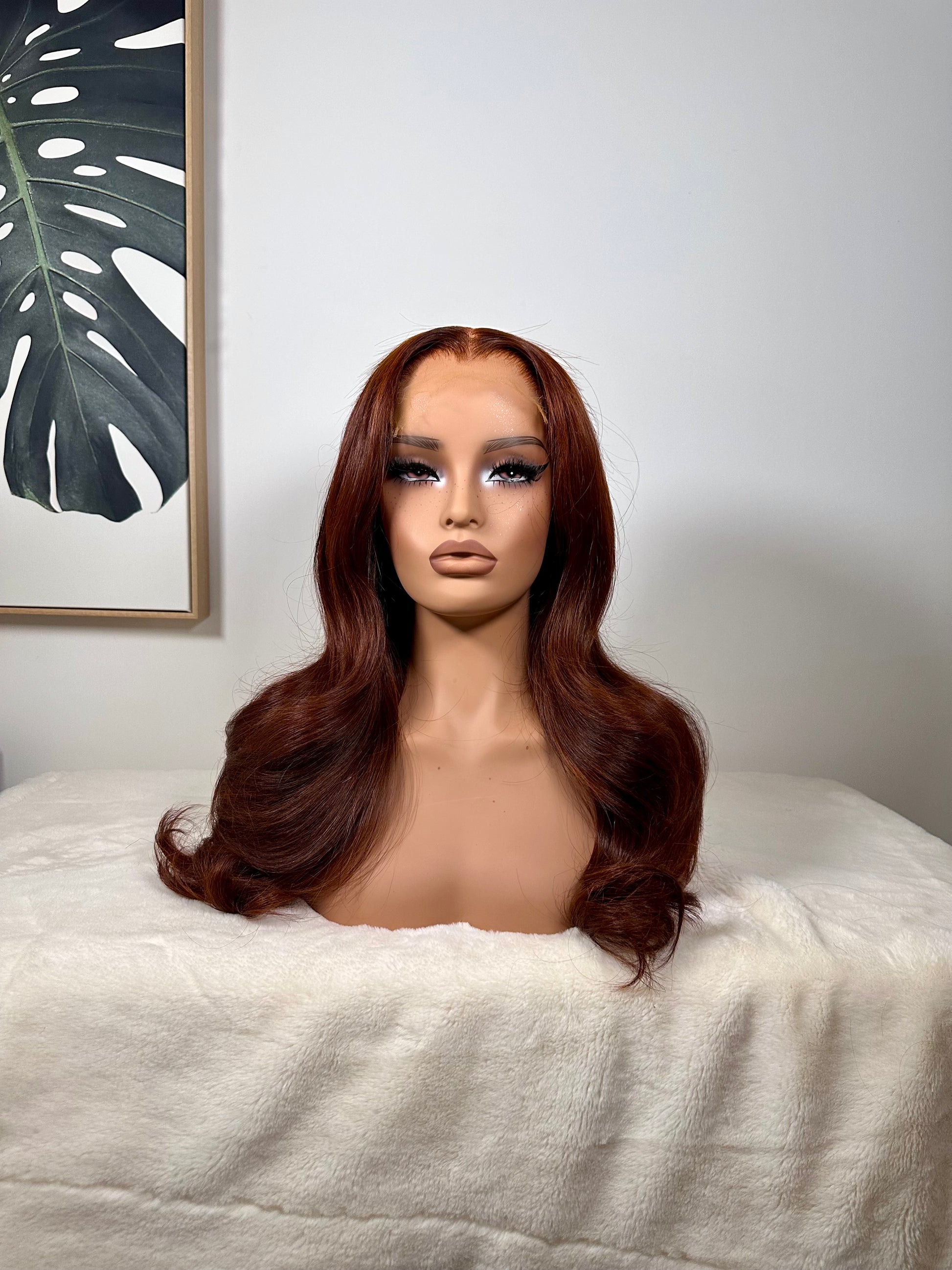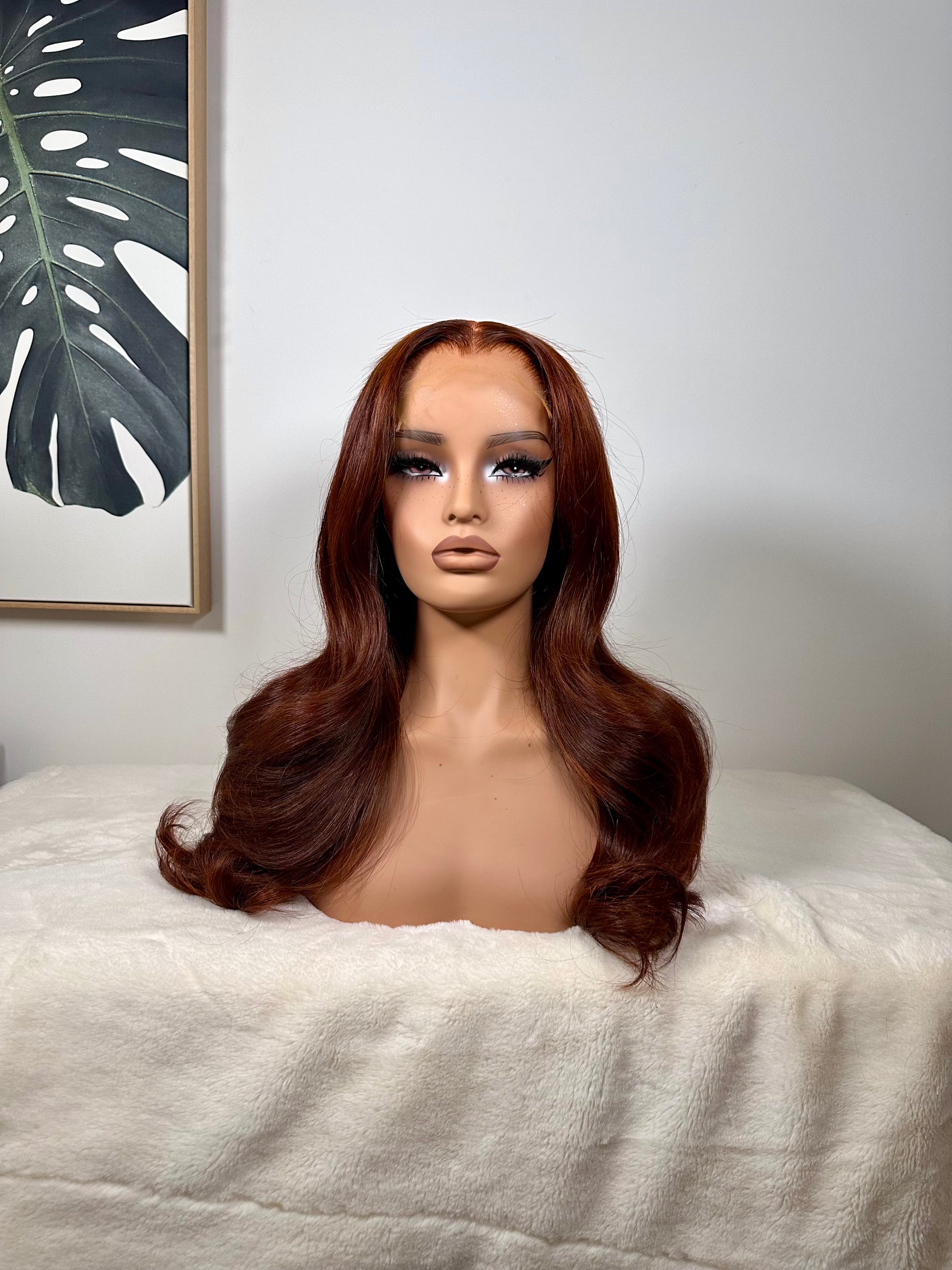 This unit has such a rich, warm auburn tone with soft waves. It gives off cozy, elegant, and autumn vibes.